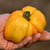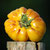 Riesenfrüchte in goldgelb und feuerrot - mit ihren wunderbaren Farbnuancen erinnert sie aufgeschnitten an ein buntes Glasfenster. Schön fleischig, saftig, mit einem komplexen, vielschichtigen Aroma, ähnlich der Ananastomate, aber etwas gleichmäßiger geformt mit leicht grippten Schultern.