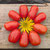 Auf dem Foto kommen die kleinen gelben Sprenkel die typisch für diese Fleischtomate sind gar nicht gut zur Geltung, ihre saftige Textur und ihre glänzende Schale dafür umso mehr.